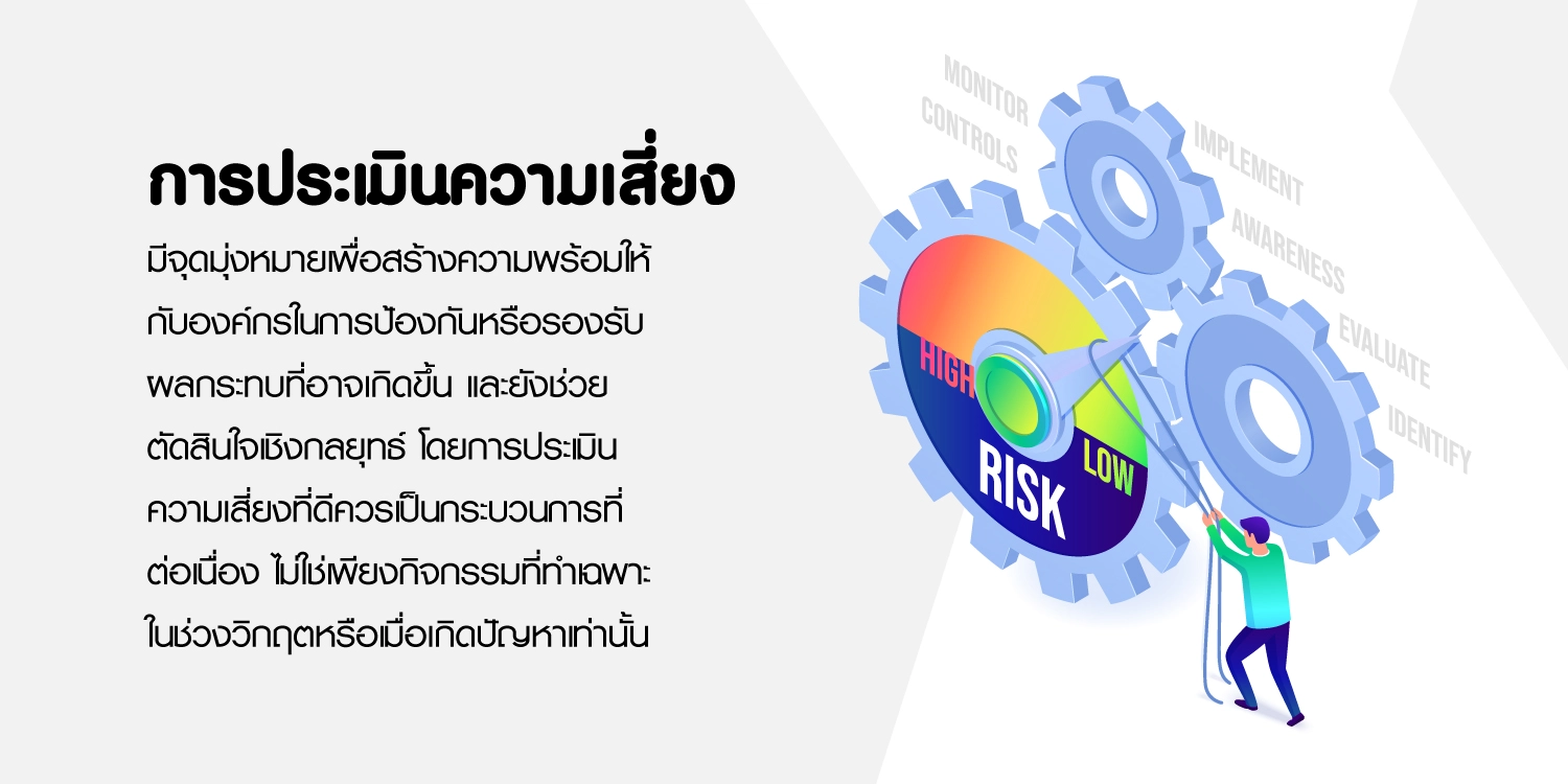 Risk assessment คือกระบวนการที่องค์กรใช้ในการวิเคราะห์ว่า มีปัจจัยใดบ้างที่อาจก่อให้เกิดผลกระทบต่อเป้าหมายขององค์กร และปัจจัยเหล่านั้นมีแนวโน้มเกิดขึ้นมากน้อยเพียงใด หากเกิดขึ้นจริงจะสร้างผลกระทบในระดับไหน กระบวนการนี้ไม่ได้มุ่งเน้นเพียงการป้องกันปัญหา แต่ยังเป็นเครื่องมือที่ช่วยบริหารความไม่แน่นอนได้อย่างมีระบบ
